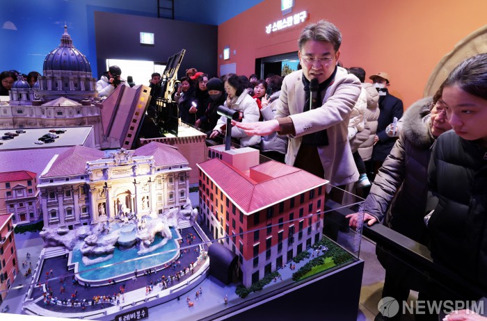 [서울=뉴스핌] 오승록 노원구청장이 31일 오후 서울 노원구 화랑대철도공원 노원기차마을 앞 광장에서 열린 ‘노원기차마을 이탈리아관’ 개관식에 참석해 관람자들에게 설명을 하고 있다. ‘노원기차마을 이탈리아관’은 지난 2022년 개관한 ‘노원기차마을 스위스관’의 후속으로, 고대부터 중세의 문화유산과 도시의 역사를 중심으로 ▲로마의 콜로세움 ▲나폴리의 크루즈 풍경 ▲피렌체 두오모 성당 ▲베네치아의 곤돌라 등 이탈리아 전역의 손꼽는 명소를 움직이는 모형 연출과 함께 실물의 1/87 규모로 구현해냈다. [사진=노원구청] 2026.01.31 photo@newspim.com