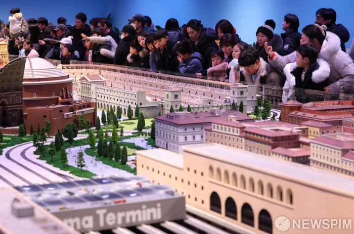 [서울=뉴스핌] 31일 오후 서울 노원구 화랑대철도공원 노원기차마을 앞 광장에서 오승록 노원구청장이 참석한 가운데 열린 ‘노원기차마을 이탈리아관’ 개관식에서 방문객들이 관람을 하고 있다. ‘노원기차마을 이탈리아관’은 지난 2022년 개관한 ‘노원기차마을 스위스관’의 후속으로, 고대부터 중세의 문화유산과 도시의 역사를 중심으로 ▲로마의 콜로세움 ▲나폴리의 크루즈 풍경 ▲피렌체 두오모 성당 ▲베네치아의 곤돌라 등 이탈리아 전역의 손꼽는 명소를 움직이는 모형 연출과 함께 실물의 1/87 규모로 구현해냈다. [사진=노원구청] 2026.01.31 photo@newspim.com