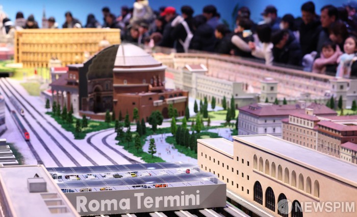 [서울=뉴스핌] 31일 오후 서울 노원구 화랑대철도공원 노원기차마을 앞 광장에서 오승록 노원구청장이 참석한 가운데 열린 ‘노원기차마을 이탈리아관’ 개관식에서 방문객들이 관람을 하고 있다. ‘노원기차마을 이탈리아관’은 지난 2022년 개관한 ‘노원기차마을 스위스관’의 후속으로, 고대부터 중세의 문화유산과 도시의 역사를 중심으로 ▲로마의 콜로세움 ▲나폴리의 크루즈 풍경 ▲피렌체 두오모 성당 ▲베네치아의 곤돌라 등 이탈리아 전역의 손꼽는 명소를 움직이는 모형 연출과 함께 실물의 1/87 규모로 구현해냈다. [사진=노원구청] 2026.01.31 photo@newspim.com