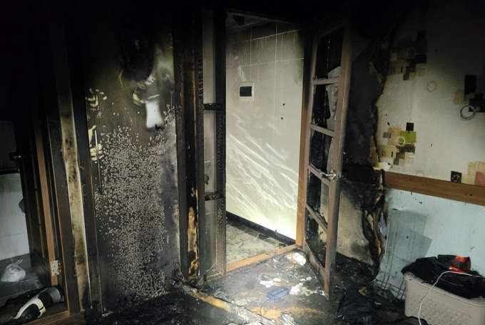 4층 발화 세대가 반소하고 가재도구 등이 소실돼 소방 추산 450여만 원의 재산 피해가 났다.