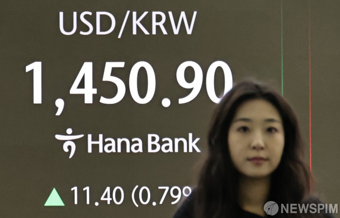 [서울=뉴스핌] 양윤모 기자 = 미국의 25% 관세 인상 가시화에 2일 오전 서울외환시장에서 달러/원 환율은 전장 대비 11.40원 상승한 1450.90원에 주간거래를 시작했다. 코스피는 전장 종가보다 103.19 포인트(1.98%) 하락하며 5121.17로, 코스닥은 25.18 포인트(2.19%) 하락한 1124.26으로 장을 시작한 가운데, 서울 중구 하나은행본점 딜링룸에서 직원들이 업무를 보고 있다. 2026.02.02 yym58@newspim.com