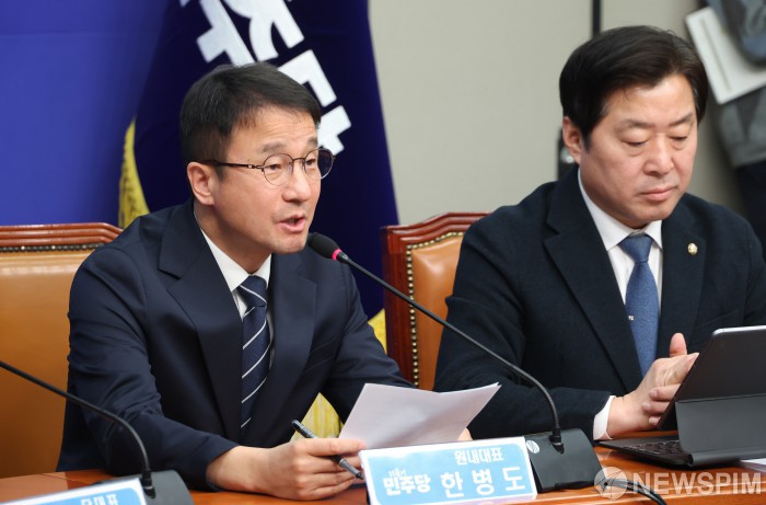 [서울=뉴스핌] 정일구 기자 = 한병도 더불어민주당 원내대표가 2일 오전 서울 여의도 국회에서 열린 최고위원회의에서 모두발언을 하고 있다. 2026.02.02 mironj19@newspim.com