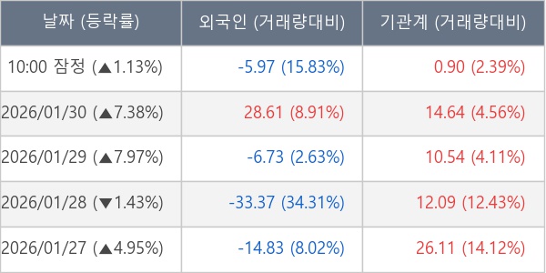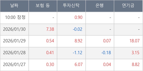 [표] 주요 기관별 순매매량 (단위 만주)