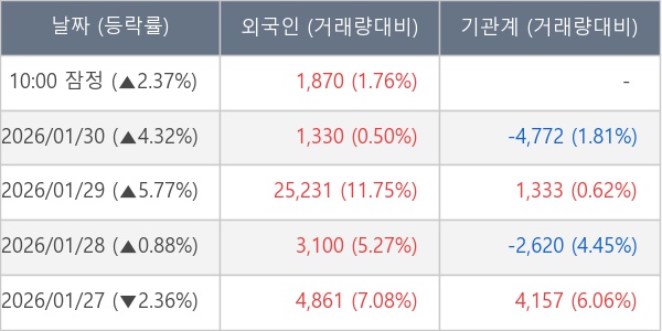 [표] 외국인ㆍ기관 순매매량 (단위 주)