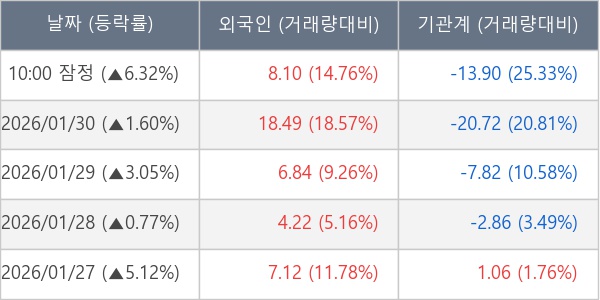 [표] 주요 기관별 순매매량 (단위 만주)