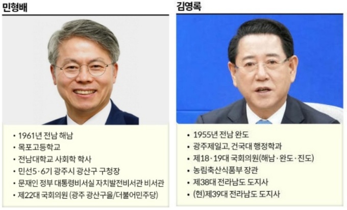 [광주=뉴스핌] 박진형 기자 = 6·3 지방선거를 앞두고 실시된 '전남광주 통합 단체장' 후보 적합도 조사에서 민형배 더불어민주당 의원(광주 광산을)과 김영록 전남도지사가 오차범위 내에서 접전을 벌이고 있는 것으로 나타났다.