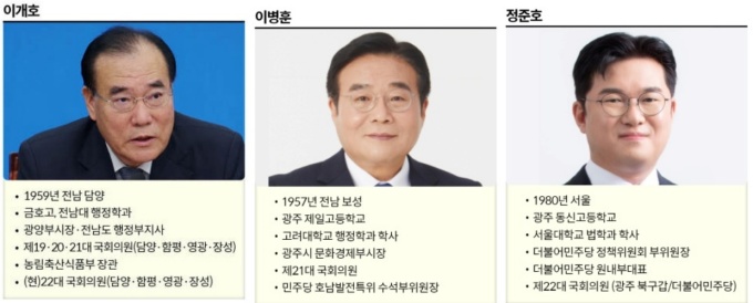 이어 신정훈 의원(9.2%), 주철현 의원(6.8%), 강기정 광주시장(6.5%), 이개호 의원(4.7%), 이병훈 전 의원(3.3%), 정준호 의원(3.2%) 순으로 나타났다. '적합한 인물이 없거나 잘 모르겠다'는 응답은 합계 17.6%였다.