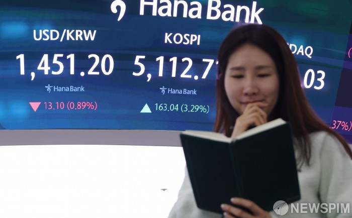 [서울=뉴스핌] 정일구 기자 = 3일 코스피 지수가 전 거래일보다 165.14포인트(3.34%) 상승한 5114.81에 출발했다. 코스닥 지수는 전 거래일보다 37.58포인트(3.42%) 오른 1135.94에 시작했다. 서울 외환시장에서 달러/원 환율은 전 거래일 주간거래 종가보다 12.3원 오른 1452.0원에 개장했다. 이날 오전 서울 중구 하나은행 딜링룸에서 딜러들이 업무를 보고 있다. 2026.02.03 mironj19@newspim.com