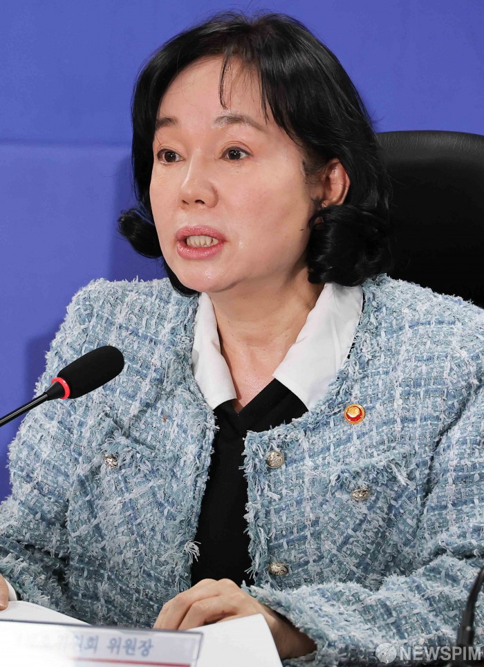 [서울=뉴스핌] 윤창빈 기자 = 송경희 개인정보보호위원장이 4일 서울 여의도 국회 의원회관에서 열린 개인정보 유출 대응 강화를 위한 당정협의에서 모두발언을 하고 있다. 2026.02.04 pangbin@newspim.com