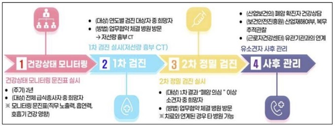 2026년부터 검진이 정례화되면 모든 학교 급식종사자는 출생연도에 따라 2년 주기로 폐암 검진을 받게 된다. 1차 검진에서 폐암 의심 이상 소견이 확인될 경우, 대상자는 본인 희망에 따라 2차 정밀 검진을 받을 수 있다. 검진 전 과정은 서울특별시교육청 보건안전진흥원과 협력병원을 통해 진행된다.
