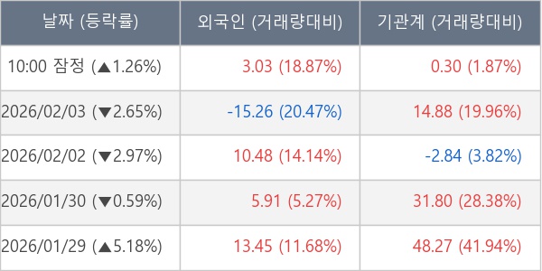 [표] 주요 기관별 순매매량 (단위 만주)