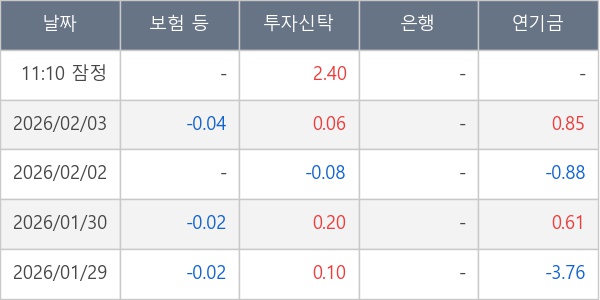 [표] 주요 기관별 순매매량 (단위 만주)