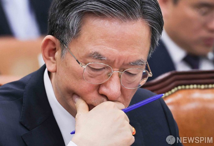 [서울=뉴스핌] 윤창빈 기자 = 정성호 법무부 장관이 4일 서울 여의도 국회에서 열린 법제사법위원회 전체회의에서 자료를 확인하고 있다. 2026.02.04 pangbin@newspim.com
