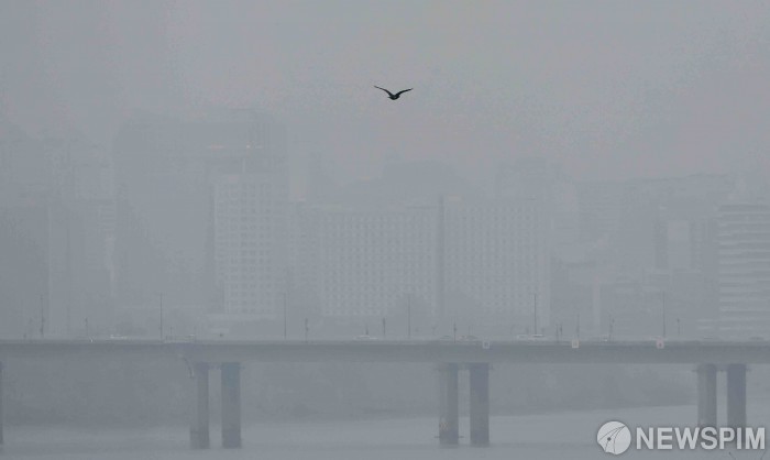 [서울=뉴스핌] 윤창빈 기자 = 수도권 미세먼지 농도가 '나쁨' 수준을 보인 5일 오전 서울 시내가 뿌옇게 보이고 있다. 2026.02.05 pangbin@newspim.com