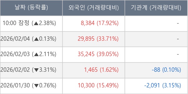 [표] 외국인ㆍ기관 순매매량 (단위 주)