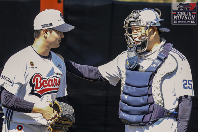 [시드니=뉴스핌] 이웅희 기자=두산의 미래가 호주 스프링캠프에서 선배들 멘토링을 받으며 성장 중이다. 투수 서준오와 최주형, 외야수 김주오가 1군 캠프 합류 효과를 톡톡히 누리고 있다.