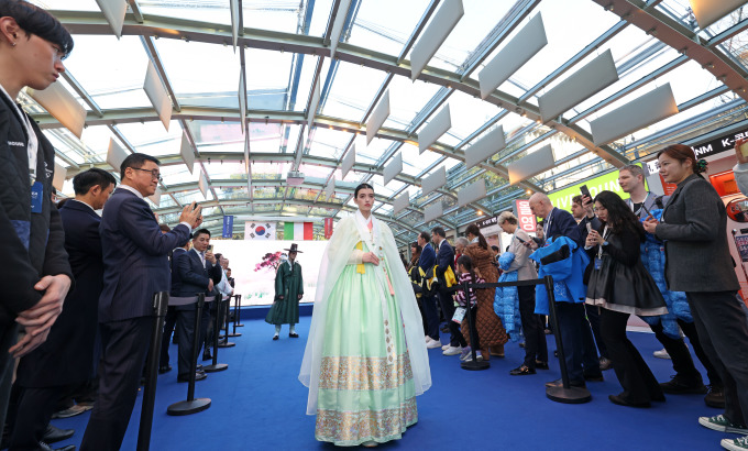 [서울=뉴스핌] 김용석 선임기자 = 2026 밀라노-코르티나담페초 동계올림픽 개막을 하루 앞둔 5일(현지시간) 이탈리아 코리아하우스에서 열린 한복 패션쇼가 열렸다. 코리아하우스가 조성된 '빌라 네키 캄필리오'는 밀라노 시내 중심부의 역사적인 건축·문화 공간이다.  [사진= 문체부]