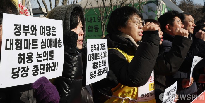 "대형마트 심야배송 허용 논의 중단하라!"