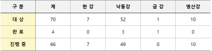 한편 기후부는 지방정부 및 한국수자원공사 취·양수장 70곳에 대한 개선사업을 추진하고 있다. 현재 4곳은 개선을 완료했고, 66곳은 개선을 진행 중이다.