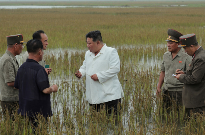 [서울=뉴스핌] 이영종 통일북한전문기자 = 김정은 북한 국무위원장이 지난 2023년 8월 21일 남포시 온천군 안석간석지 제방 붕괴 현장을 찾아 침수된 논을 살펴보고 있다. [사진=북한매체 종합] 2026.02.04 yjlee@newspim.com