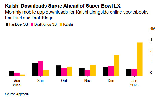 여러 업계 애널리스트들은 여전히 기존 미국 스포츠북들이 올해 기록적인 슈퍼볼 수익을 올릴 것으로 예상하고 있다. H2 갬블링 캐피털의 시니어 애널리스트인 에드 버킨은 예측 시장을 고려하기 전 총 베팅액이 작년 대비 9% 증가한 17억8000만달러에 이를 것으로 전망하고 있다. 하지만 그는 예측 시장이 슈퍼볼에서 6억3000만달러의 베팅을 유치하고, 이 이벤트의 베팅 활동에서 전년 대비 증가분의 80%를 차지할 것으로 예상한다고 말했다.