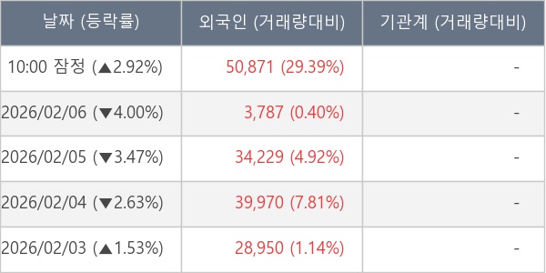 [표] 외국인ㆍ기관 순매매량 (단위 주)