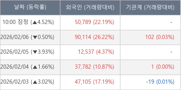 [표] 외국인ㆍ기관 순매매량 (단위 주)