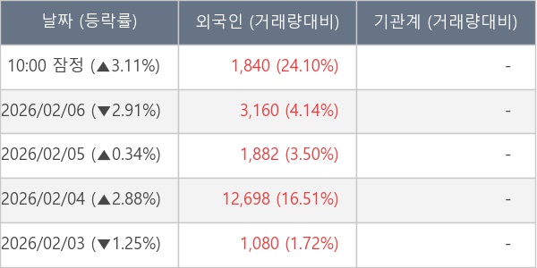 [서울=뉴스핌] 로보뉴스 = 09일 10시 15분 현재 씨티케이(260930)는 전일 대비 3.11% (현재가 4,480원) 상승했고, 외국인이 최근 5일 연속 순매수(누적 20,660주, 잠정) 행진을 하고 있다.