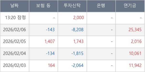 [표] 주요 기관별 순매매량 (단위 주)