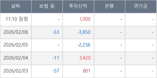 [표] 주요 기관별 순매매량 (단위 주)