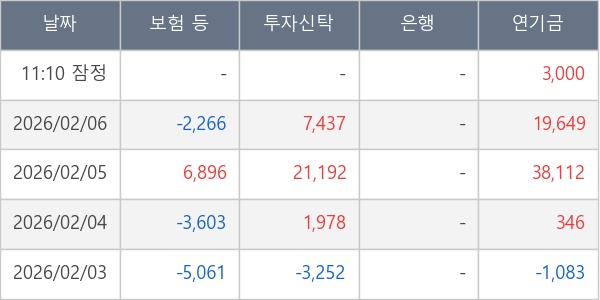 [표] 주요 기관별 순매매량 (단위 주)