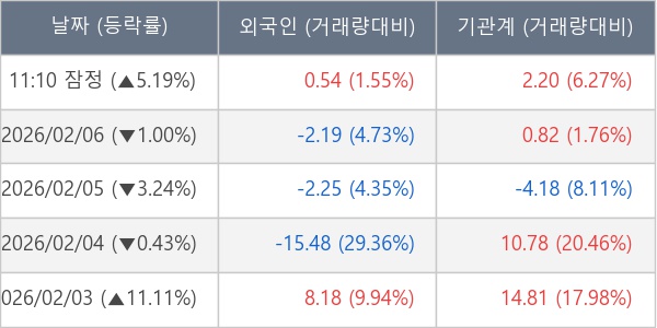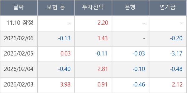 [표] 주요 기관별 순매매량 (단위 만주)