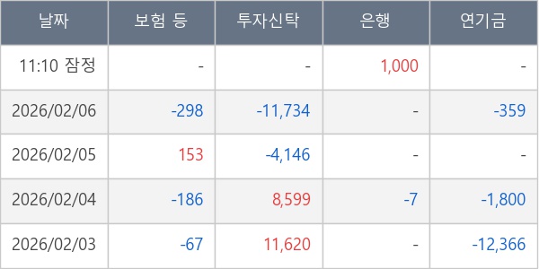 [표] 주요 기관별 순매매량 (단위 주)