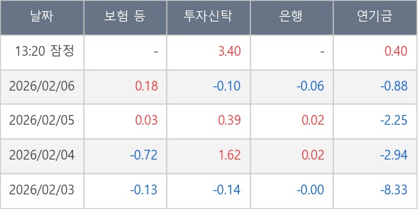 [표] 주요 기관별 순매매량 (단위 만주)