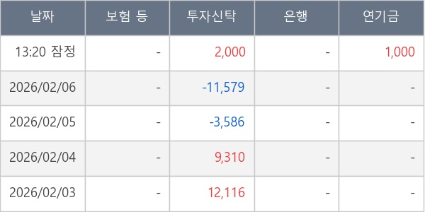 [표] 주요 기관별 순매매량 (단위 주)