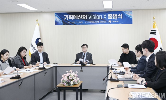 [서울=뉴스핌] 임기근 기획예산처 장관 직무대행 차관이 2월 9일 오후 KT&G 임시집무청사에서 열린 '기획예산처 Vison X 출범식'에 참석,모두발언을 하고 있다.[사진= 기획예산처] 2026.02.09 photo@newspim.com
