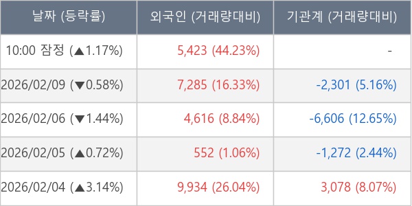 [표] 외국인ㆍ기관 순매매량 (단위 주)