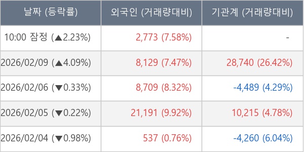 [표] 외국인ㆍ기관 순매매량 (단위 주)