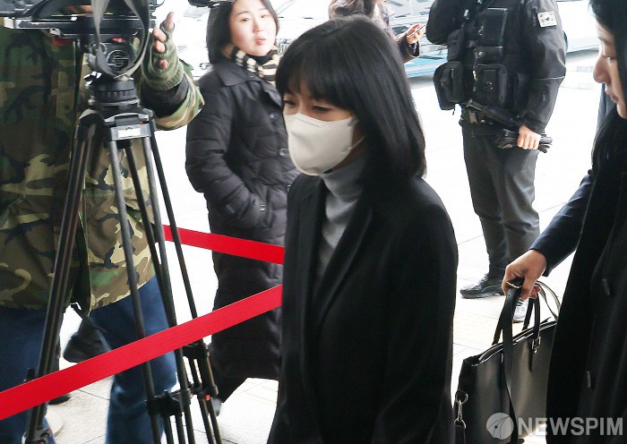 [서울=뉴스핌] 정일구 기자 = 미공개 정보를 이용해 주식을 사들여 억대 부당 이득을 챙긴 혐의를 받는 고(故) 구본무 LG그룹 선대회장의 장녀인 구연경 LG복지재단 대표가 10일 오후 서울 양천구 서울남부지방법원에서 열린 1심 선고 공판에 출석하고 있다. 2026.02.10 mironj19@newspim.com