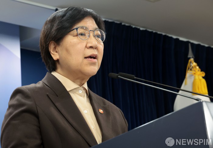 [서울=뉴스핌] 이길동 기자 = 정은경 보건복지부 장관이 10일 서울 종로구 정부서울청사에서 제7차 회의에서 의결된 2027년 이후 의사인력 양성 규모에 대해 브리핑하고 있다.2026.02.10 gdlee@newspim.com