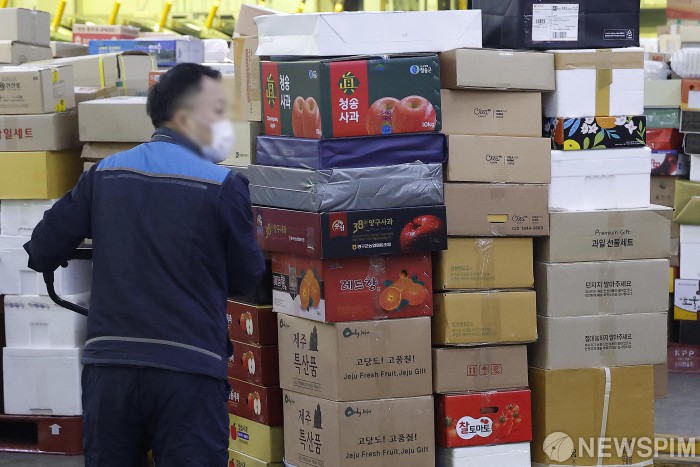 [서울=뉴스핌] 류기찬 기자 = 설 명절을 앞둔 11일 오전 서울 광진구 동서울우편물류센터에서 작업자들이 택배 상자 분류작업을 하고 있다. 2026.02.11 ryuchan0925@newspim.com