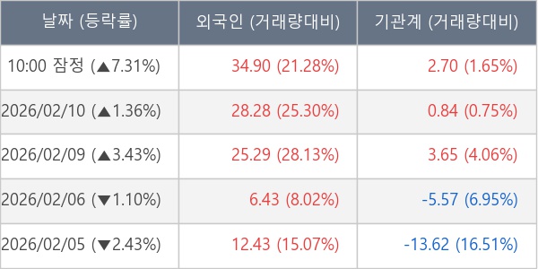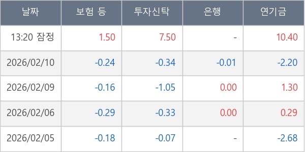 [표] 주요 기관별 순매매량 (단위 만주)