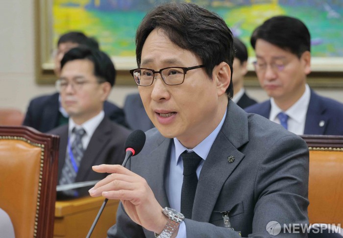 [서울=뉴스핌] 윤창빈 기자 = 이재원 빗썸 대표가 11일 오전 서울 여의도 국회 정무위원회에서 열린 빗썸 비트코인 오지급 사고와 관련한 긴급 현안질의에서 의원 질문에 답변하고 있다. 2026.02.11 pangbin@newspim.com
