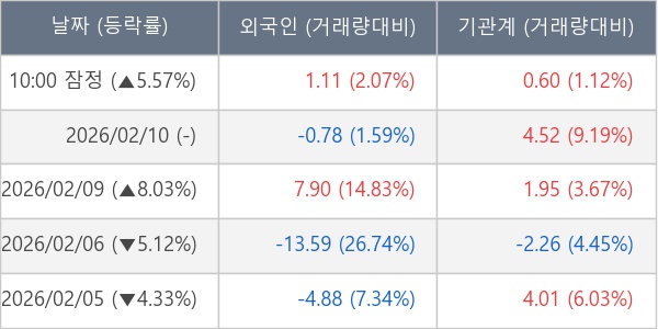 [표] 주요 기관별 순매매량 (단위 만주)