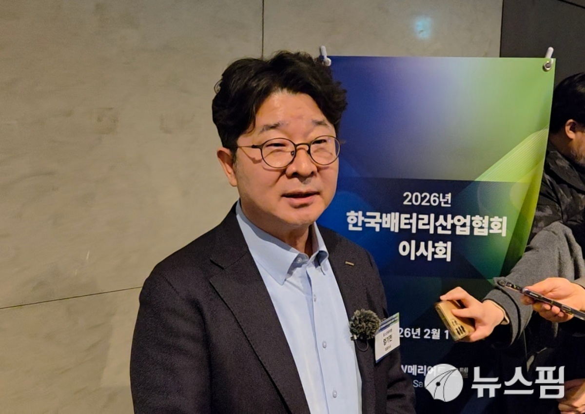 [서울=뉴스핌] 김아영 기자 = 엄기천 포스코퓨처엠 대표이사 사장이 11일 서울 서초구 JW메리어트텔에서 열린 '2026년 한국배터리산업협회 이사회' 직후 취재진의 질문에 답변하고 있다. 2026.02.11 aykim@newspim.com