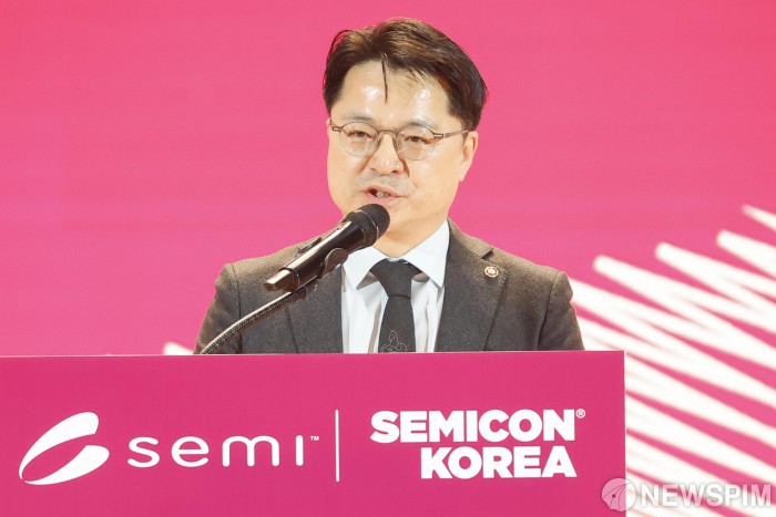[서울=뉴스핌] 류기찬 기자 = 문신학 산업통상부 제1차관이 11일 오전 서울 강남구 코엑스에서 열린 ‘세미콘 코리아 2026’에서 축사를 하고 있다. 2026.02.11 ryuchan0925@newspim.com