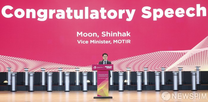 [서울=뉴스핌] 류기찬 기자 = 문신학 산업통상부 제1차관이 11일 오전 서울 강남구 코엑스에서 열린 ‘세미콘 코리아 2026’에서 축사를 하고 있다. 2026.02.11 ryuchan0925@newspim.com