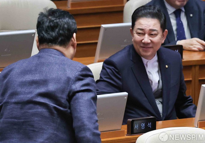 [서울=뉴스핌] 윤창빈 기자 = 김병기 무소속 의원이 11일 서울 여의도 국회에서 열린 본회의에 참석하고 있다. 2026.02.11 pangbin@newspim.com