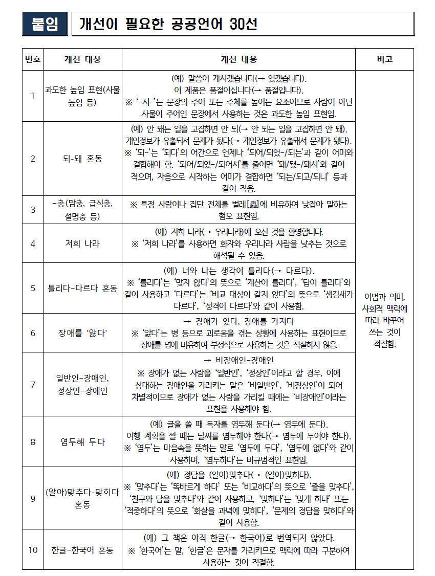 국민 10명중 9명 "과도한 높임말 고쳐야"…'개선 필요한 공공언어 30선'
