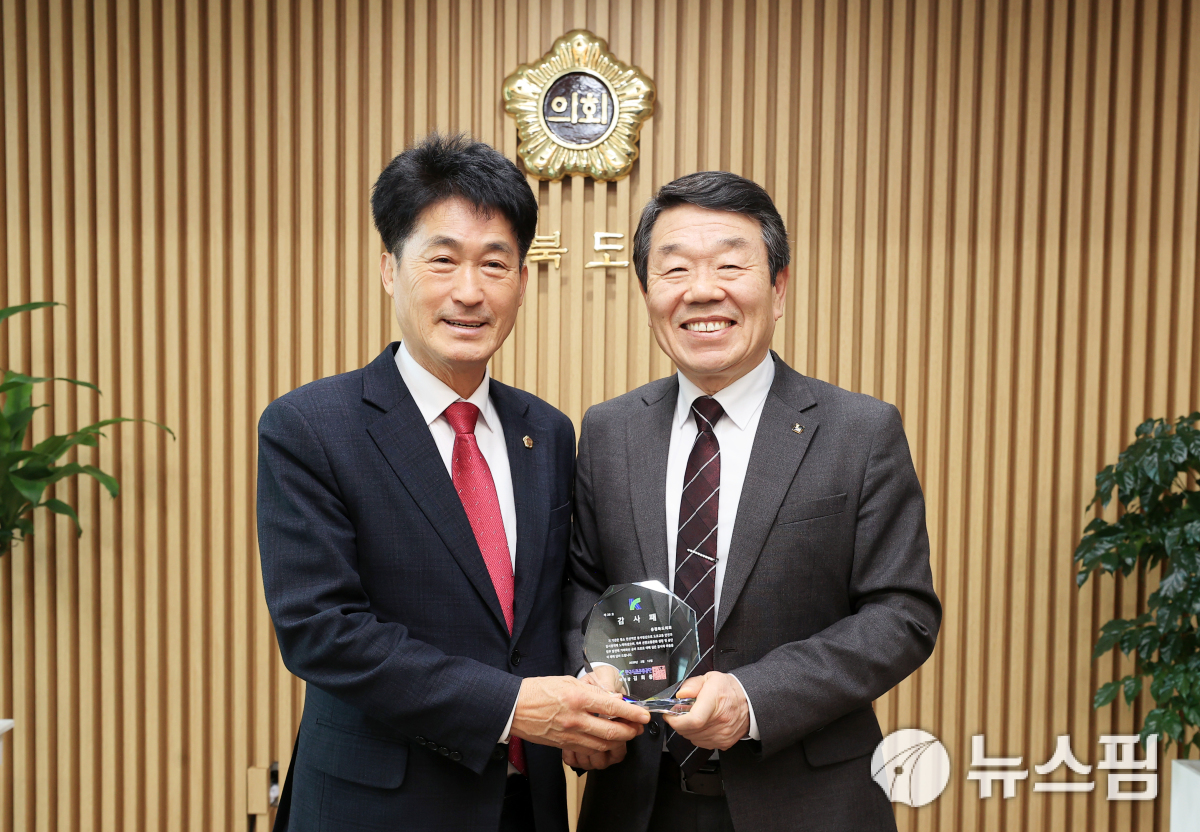 [청주=뉴스핌] 백운학 기자 = 충북도의회가 12일 한국도로교통공단으로부터 선진 교통문화 정착과 도민 교통안전 환경 조성에 기여한 공로로 감사패를 받았다.